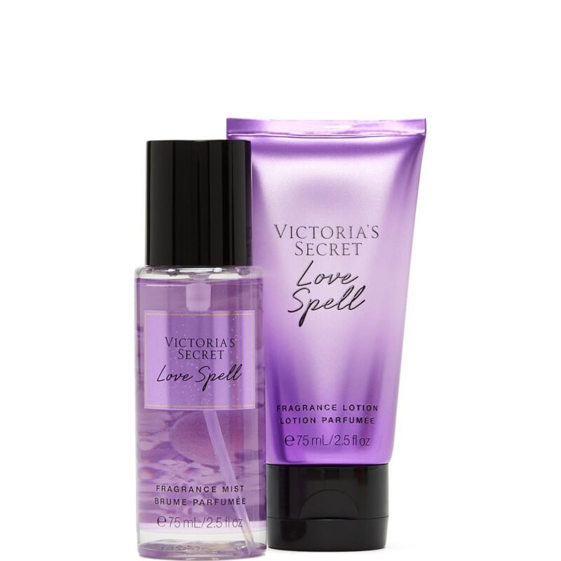Célébrez le coffret cadeau qui vous célèbre. Notre duo de mini brume et de lotion est la paire parfaite pour la superposition sur Love Spell. SORT D’AMOUR Type : Fruité Floral Fleur de cerisier. Pêche fraîche. Impossible de résister. Associez-les pour une expérience parfumée longue durée. 75 ml/2,5 oz liq. Domestique