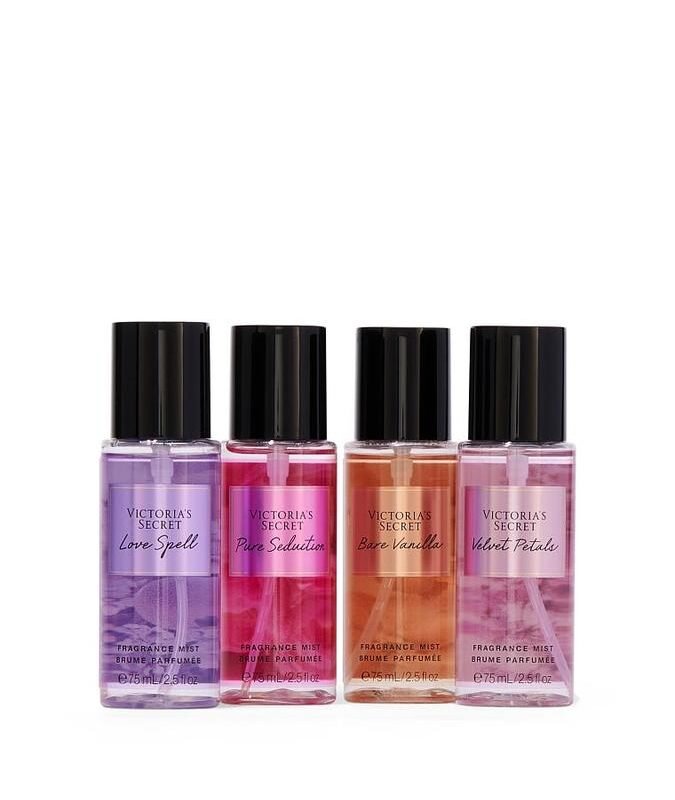 La joie de donner de la brume en cadeau. Découvrez quatre de nos parfums les plus vendus en tailles miniatures, emballés avec élégance pour la saison des cadeaux. Le set comprend Pure Seduction, Velvet Petals, Love Spell et Bare Vanilla. INCLUT : LOVE SPELL D’AMOUR Fleurs de cerisier. Pêche fraîche. Impossible à résister. Style parfumé…