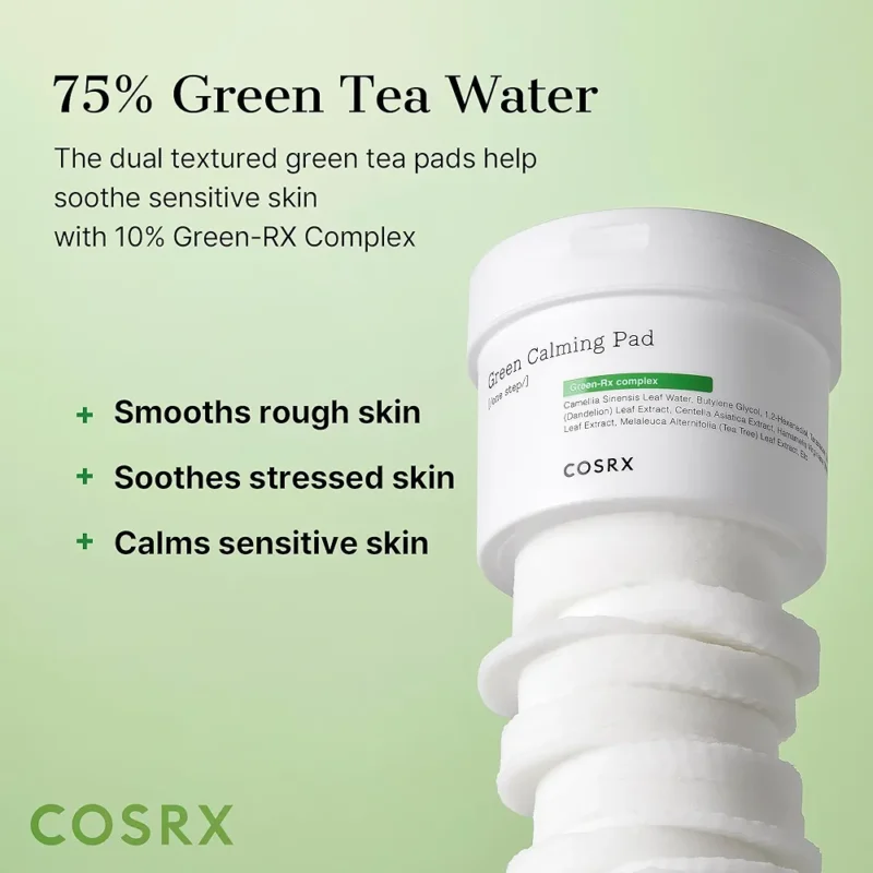 Les Green Hero Calming Pads COSRX ont été imprégnées d’une essence destinée à apaiser et à calmer la peau irritée. Elles sont formulées avec le complexe green-RX (eau de feuille de Camellia Sinensis, extrait de Centella Asiatica, Hamamelis Virginiana, extrait de feuille de ti, extrait d’Artemisia Princeps) pour rafraîchir, calmer et hydrater tandis que le…