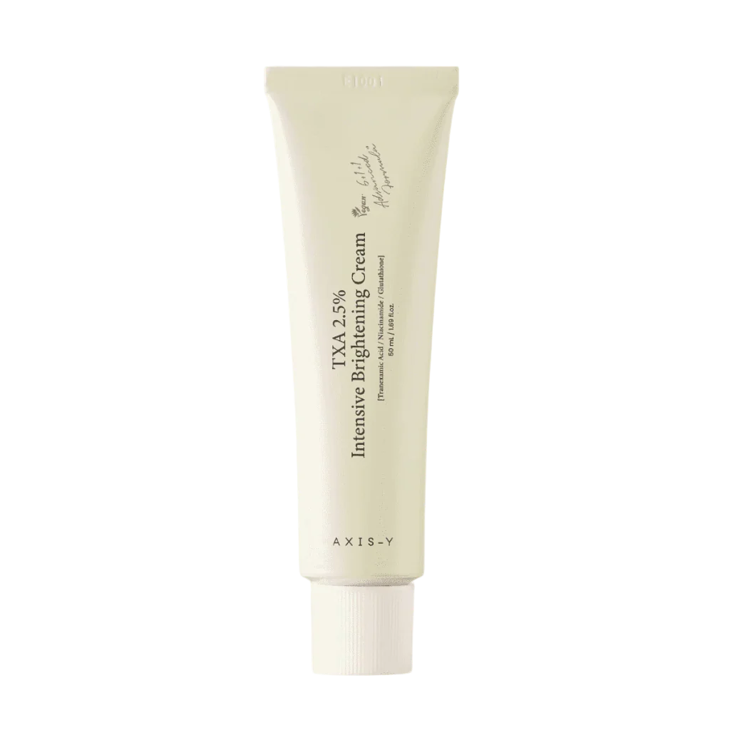 La crème élucissante intensive 2,5 % d’AXIS-Y TXA est une formule douce mais efficace conçue pour cibler la ternie et le teint irrégulier tout en offrant une hydratation profonde. Infusée à 2,5 % d’acide tranexamique, 2,5 % de niacinamide et de glutathion, cette crème nourrissante sans silicone agit pour atténuer visiblement les taches foncées, affiner le ton et restaurer la luminosité. La texture douce, semblable à un baume, se fond parfaitement dans la peau, offrant une finition apaisante et soyeuse qui soutient une peau plus lisse, plus lumineuse et plus équilibrée.