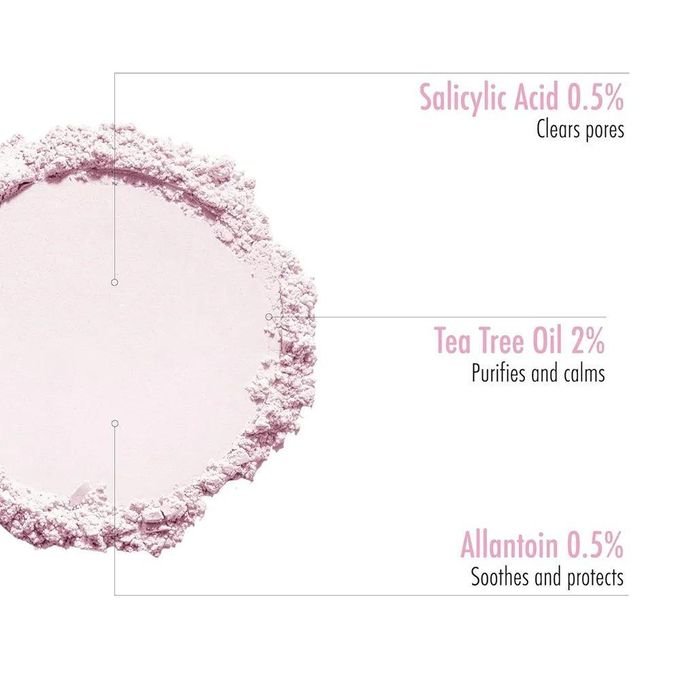 Ingredients: Zea Mays (Corn) Starch, Sodium Cocoyl Isethionate, Melaleuca Alternifolia Leaf Oil, Cellulose Acetate, Sodium Lauroyl Glutamate, Sodium Palmitate, Salicylic Acid, Allantoin, Diglycerin, Maltodextrin, Papain.